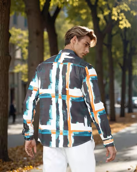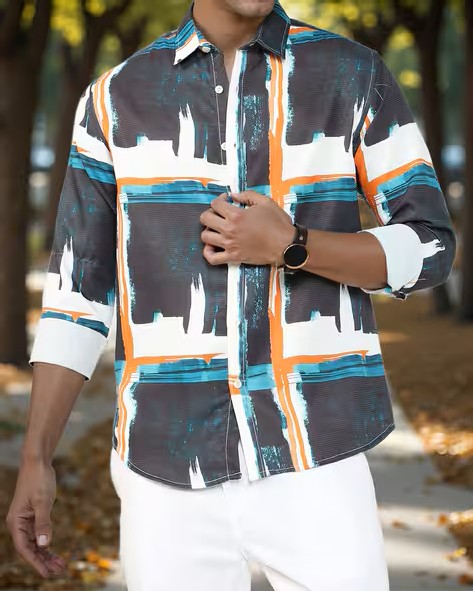 Shein Spread Collar Full Sleeves Abstract Print Shirt