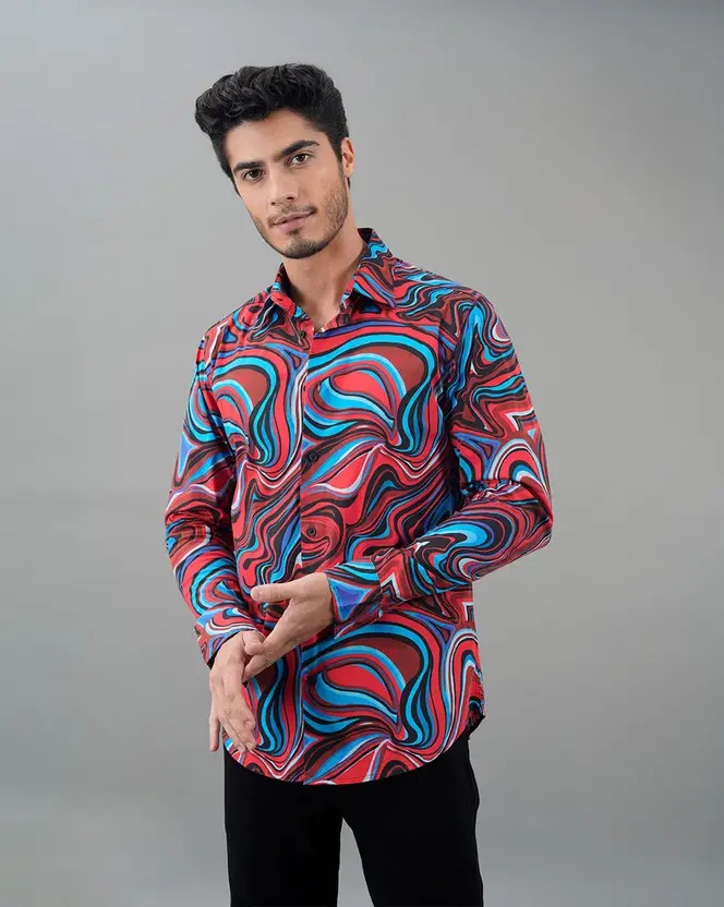 Men Regular Fit Printed Spread Collar Casual Shirt