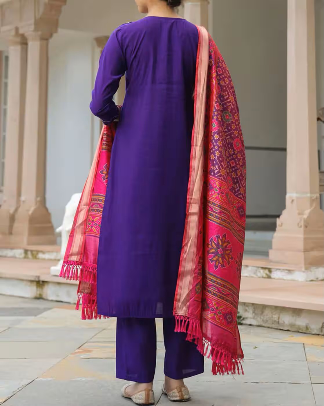 Women Cotton Blend Embroidered Kurta Pant Dupatta Set