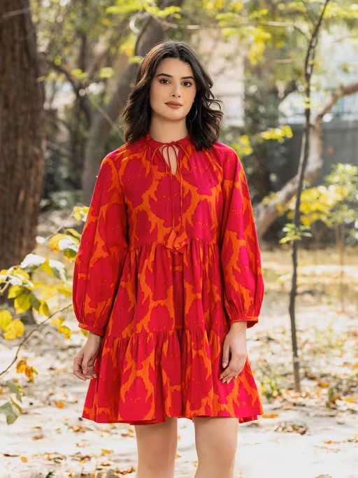 Enhance your style this season with this balloon sleeve layered mini dress from Mabish By Sonal Jain . Crafted from breathable fabric, it features an elegant printed offer and offers exceptional comfort. Pair it with heels and minimal jewellery for a chic appearance.