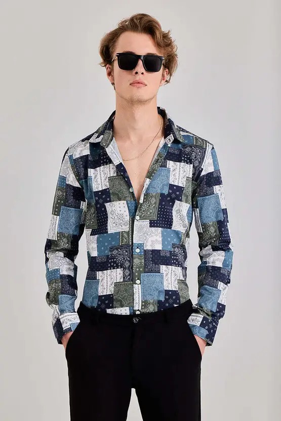 Men Slim Fit Printed Spread Collar Casual Shirt
