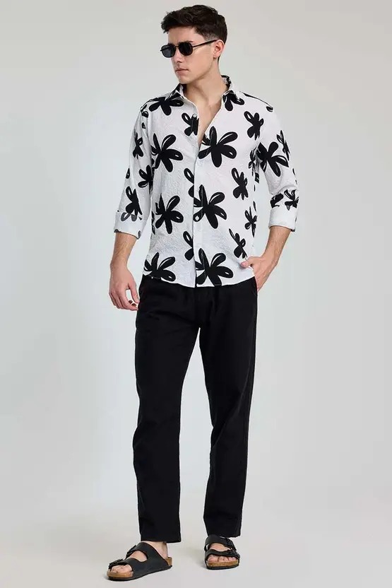 Men Slim Fit Floral Print Spread Collar Casual Shirt