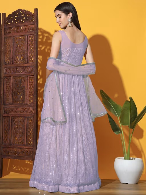 Chhabra 555 Mermaid Sequin Embellished Cocktail Gown with Zircon and Zardozi Embroidered Floral Motifs Made To Measure. Margin Is Also Left In The Garment for Further Alteration If Required. Dupatta Length Is 2.0 Mtr and Width Is 0.55 Mtr.