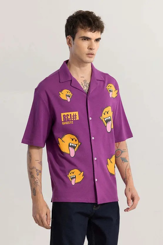 Men Oversized Fit Printed Spread Collar Casual Shirt