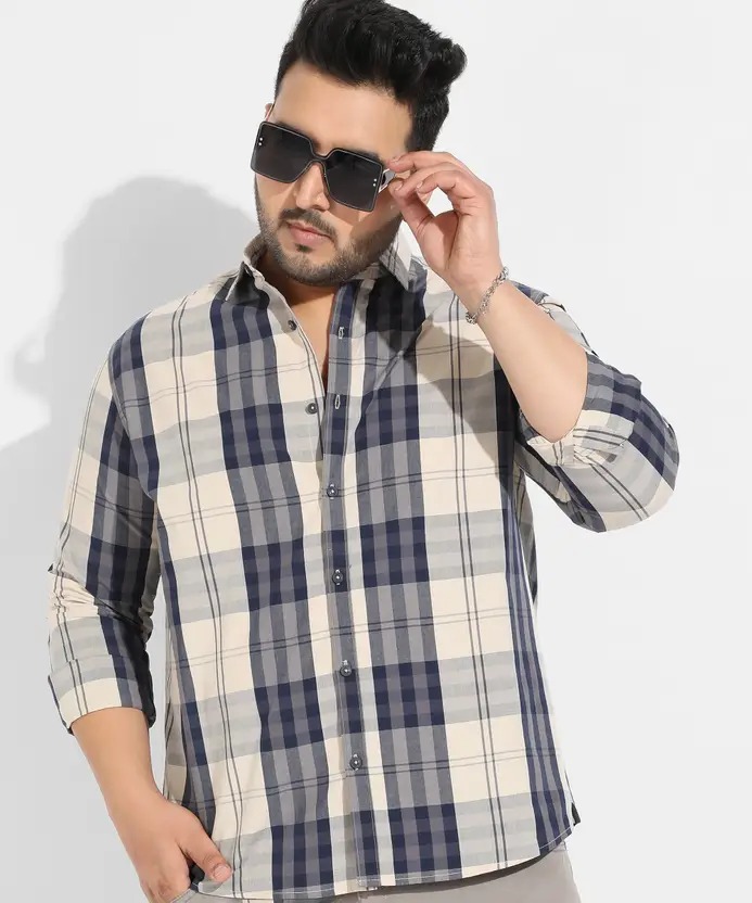 Men Regular Fit Checkered Spread Collar Casual Shirt