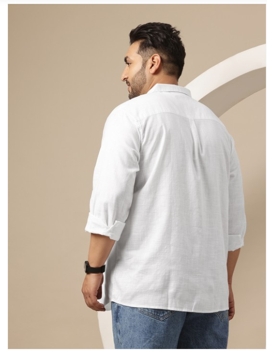 White solid opaque Casual shirt ,has a spread collar, button placket, 1 patch pocket, long regular sleeves, curved hem