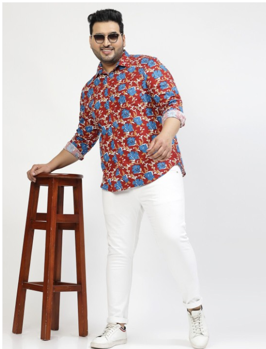 Maroon floral printed opaque Casual shirt ,has a spread collar, button placket, 1 patch pocket, long regular sleeves, curved hem