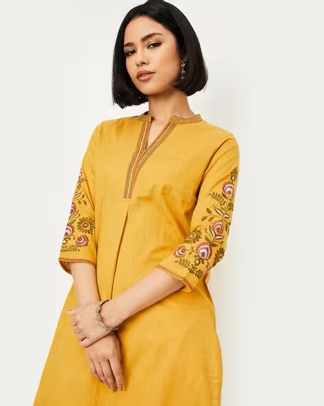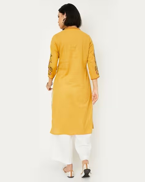 Women Embroidered Straight Kurta