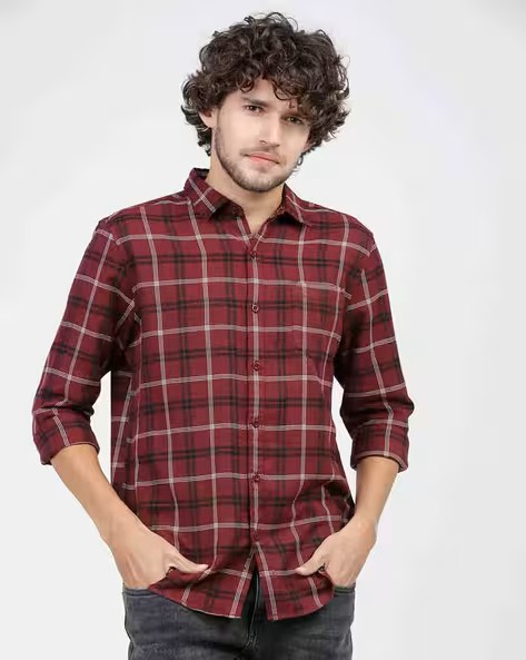Checked Slim Fit Shirt with Patch Pocket