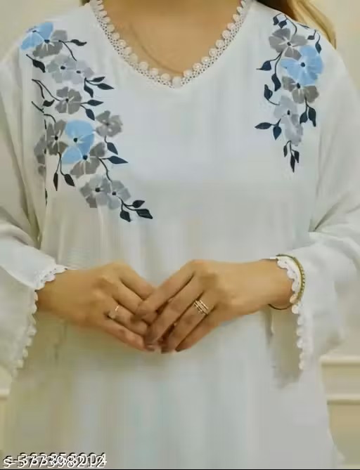 Name : white embrodery design kurti with bottomwear