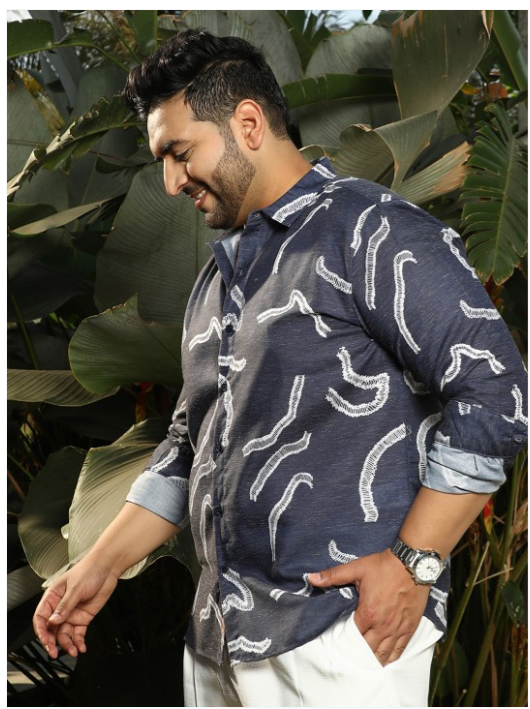 Blue graphic printed opaque Casual shirt ,has a spread collar, button placket, na pocket, long regular sleeves, curved hem