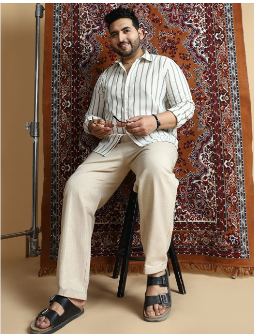 White and black vertical stripes striped opaque casual shirt ,has a mandarin collar, button placket, long roll-up sleeves, curved hem