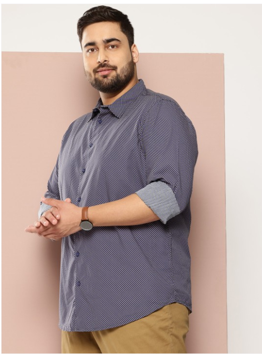 White geometric printed opaque Casual shirt ,has a spread collar, button placket, long regular sleeves, curved hem