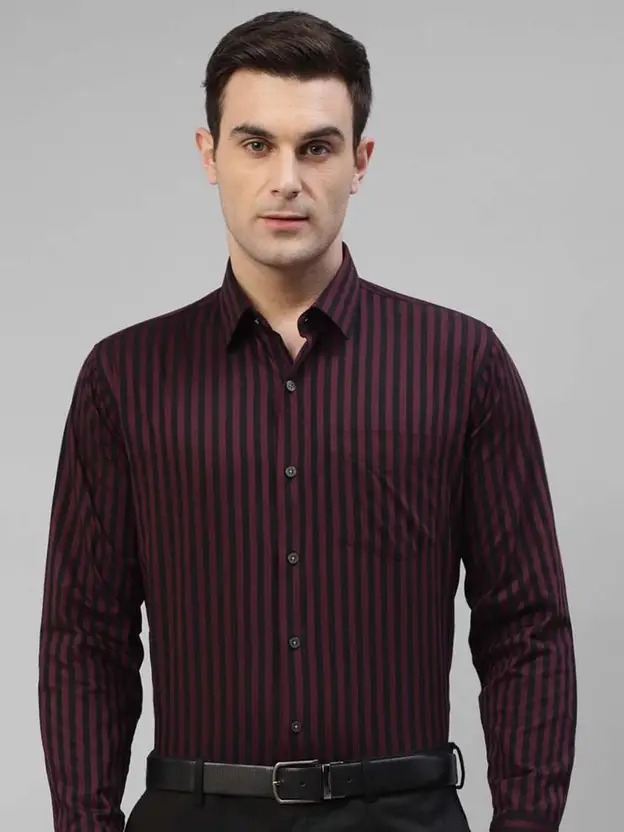 Men Slim Fit Striped Spread Collar Formal Shirt