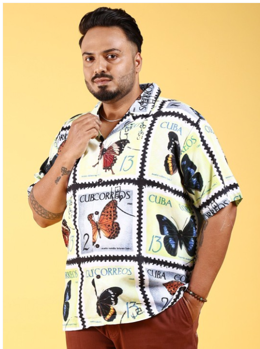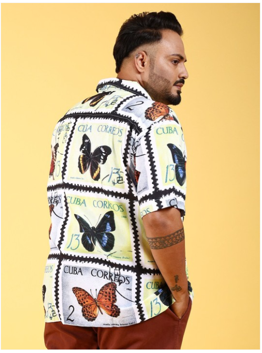 Green conversational printed opaque casual shirt ,has a cuban collar, button placket, short regular sleeves, curved hem