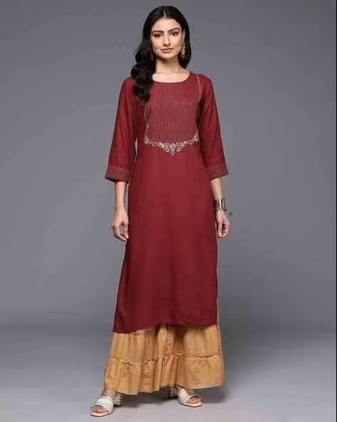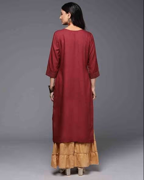 Women Embroidered Straight Kurta