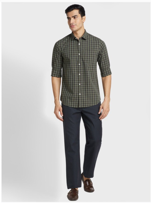 Green tartan checks checked opaque casual shirt ,has a spread collar, button placket, 1 pocket, long regular sleeves, curved hem