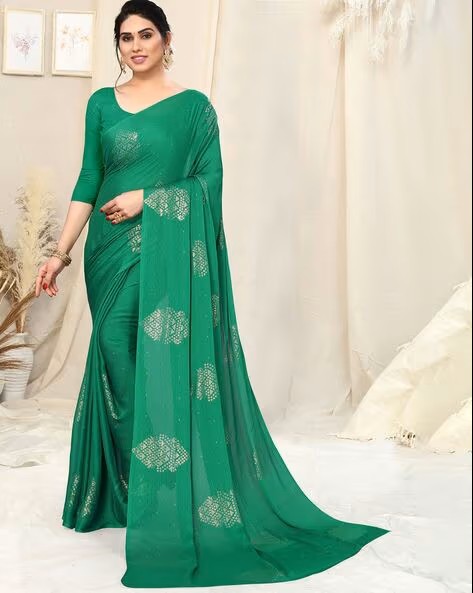 Customizable Blouse Fabric: Includes a contrast plain chiffon blouse fabric that can be stitched to fit sizes ranging from 32 to 42 inches. This customization option ensures a perfect, tailored fit, providing both comfort and versatility.