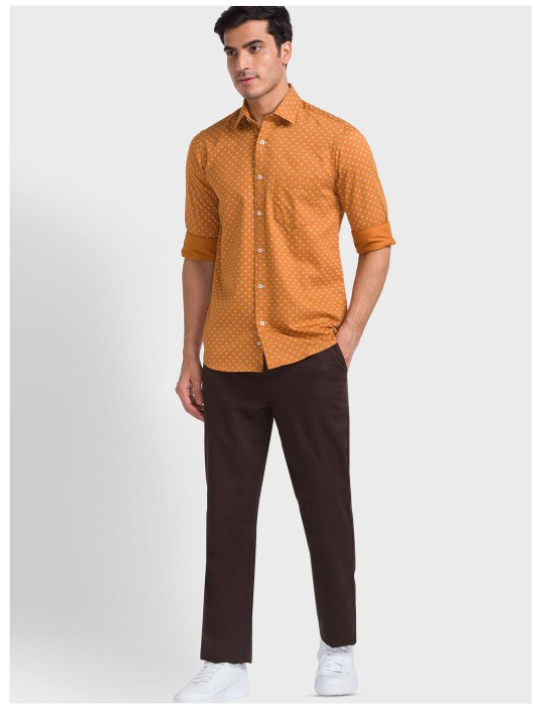 Brown micro ditsy printed opaque Casual shirt ,has a spread collar, button placket, na pocket, long regular sleeves, curved hem