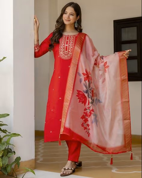 Women Embroidered Straight Kurta Set