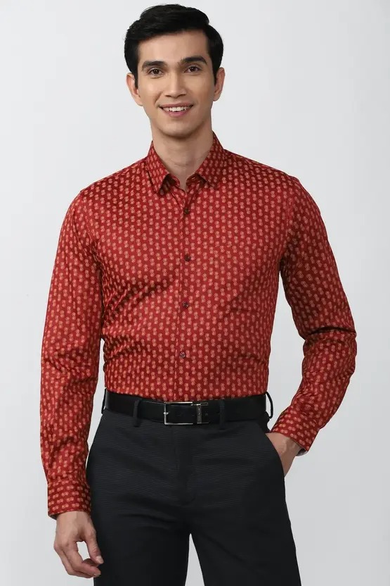 Men Slim Fit Printed Spread Collar Formal Shirt