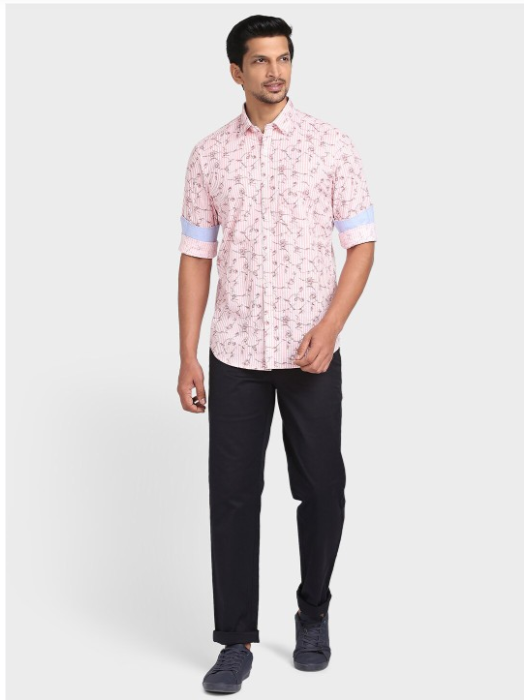 Pink floral printed opaque Casual shirt ,has a spread collar, button placket, long regular sleeves, curved hem