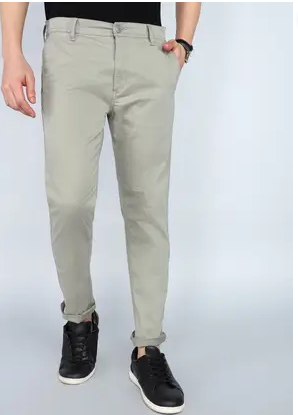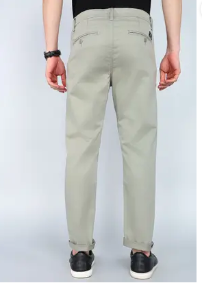 Men Slim Fit Grey Cotton Blend Trousers