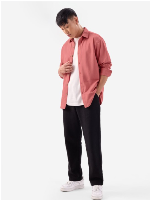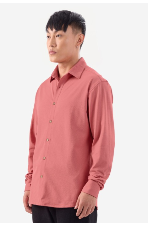 Pink solid opaque Casual shirt ,has a spread collar, button placket, na pocket, long regular sleeves, curved hem