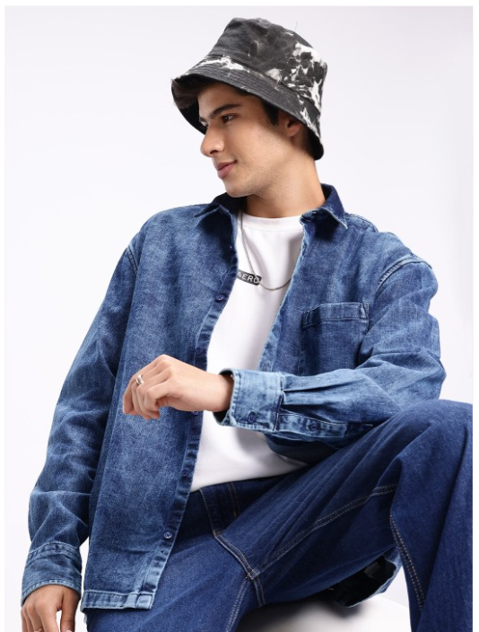 Blue solid opaque casual shirt ,has a spread collar, button placket, 1 patch pocket, long drop-shoulder sleeves, straight hem