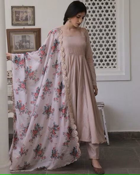 Women Floral Print Anarkali Kurta with Pants & Dupatta