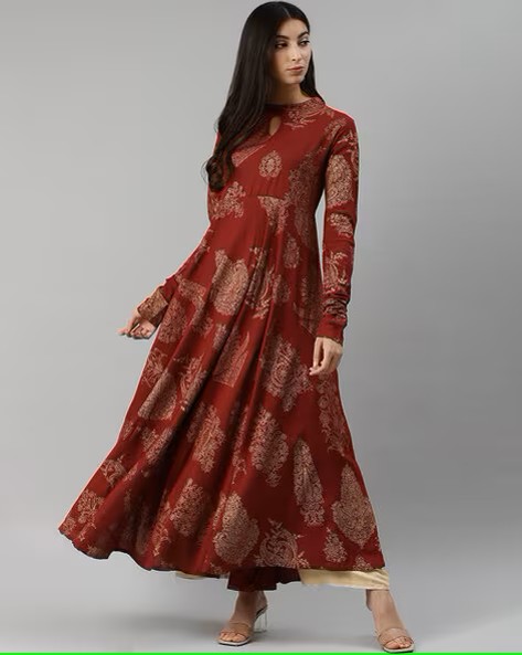 High Neck Printed Anarkali Kurta