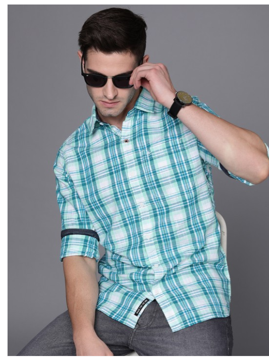 Teal blue and multicolour artan checks Casual shirt ,has a spread collar, button placket, 1 patch pocket, long regular sleeves, curved hem