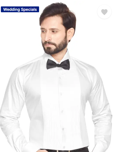 Men Slim Fit Solid Cut Away Collar Party Shirt