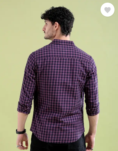 Men Slim Fit Checkered Spread Collar Casual Shirt