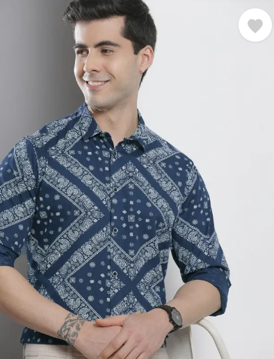 Men Slim Fit Printed Spread Collar Casual Shirt