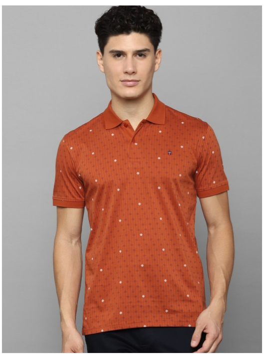 Geometric Printed Polo Collar Pure Cotton Slim Fit T-shirt