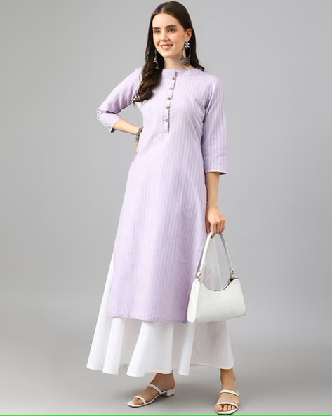 Women Striped Round-Neck Straight Kurta