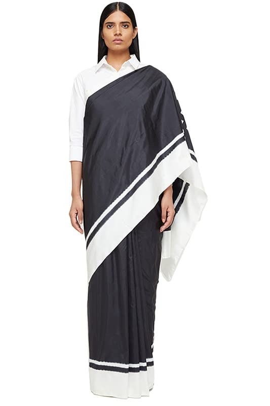 Satya Paul Black Ikat Silk Printed Woven Saree with Blouse piece