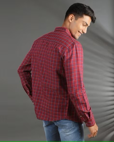 Men Checked Slim Fit Shirt with Patch Pocket