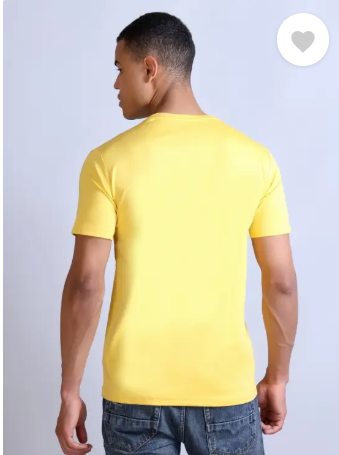 Men Printed Round Neck Cotton Blend Yellow T-Shirt