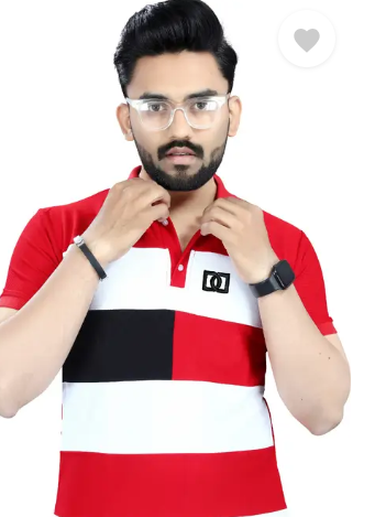 Men Colorblock Polo Neck Polycotton Red T-Shirt