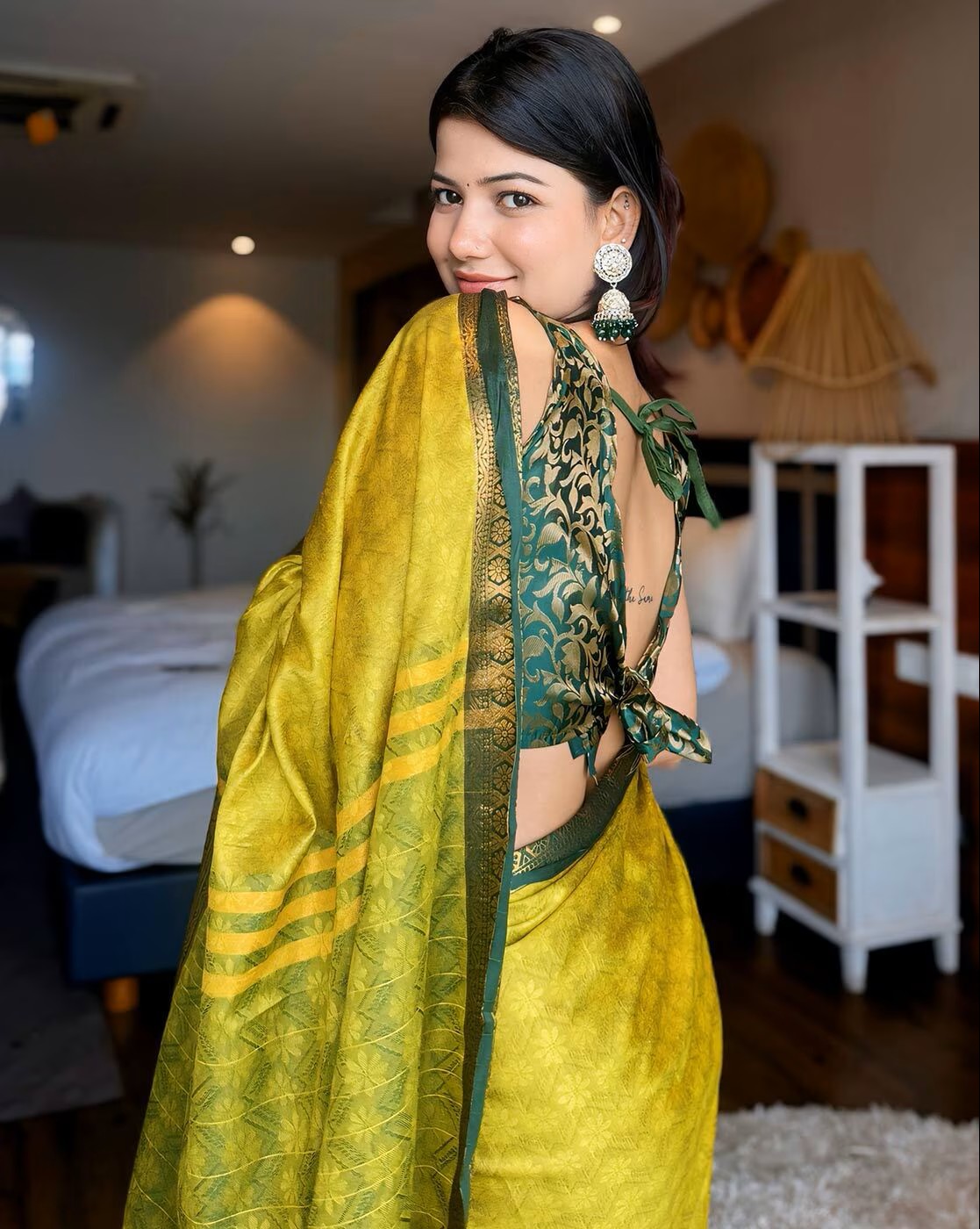 • The last image gives a detailed look of the blouse piece that comes with this saree (The blouse in the images is only for styling purpose)
