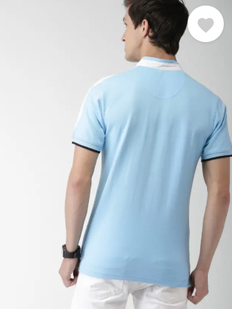 Men Colorblock Mandarin Collar Pure Cotton Blue T-Shirt