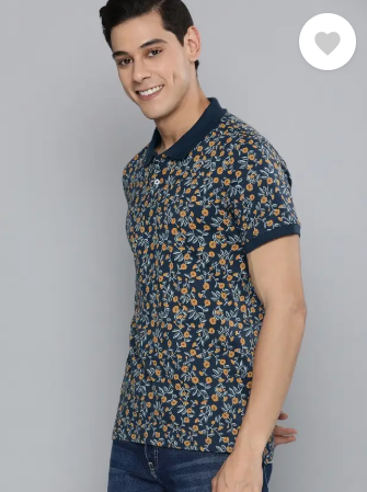 Men Printed Polo Neck Pure Cotton Dark Blue T-Shirt