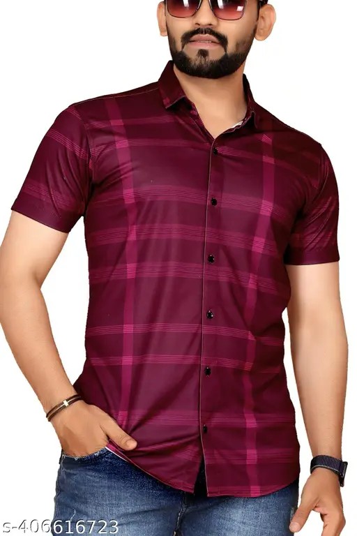 Name : STI Men's Printed Regular Spread Collar Maroon Shirts