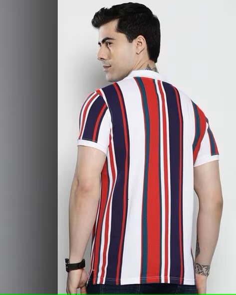 Men Striped Slim Fit Polo T-Shirt