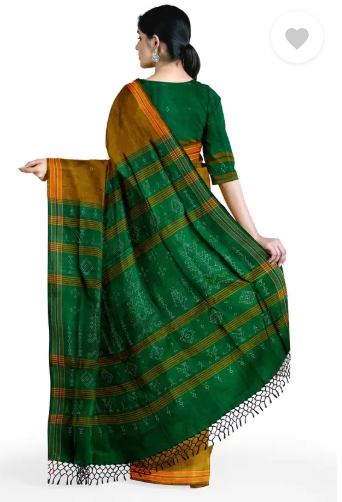 Self Design Handloom Pure Cotton Saree (Gold, Green)