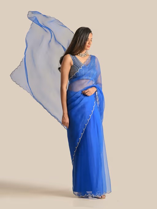 This Royal blue Organza hand Embellished blouse with Saree which has work in the border is ready to make you shine. Blouse length:13",Set of 2