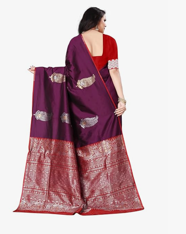 SAI FASHION Isai STORE Silk Wedding Saree Silk Stylish Pattern Blouse Thread Saree, Red