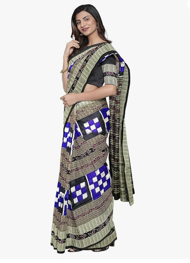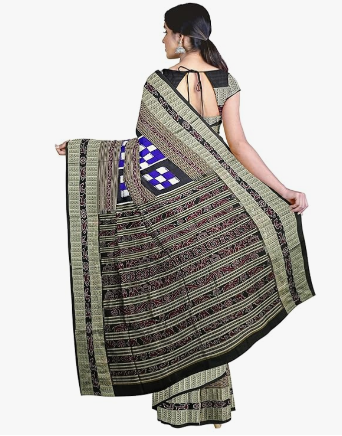 OdiKala Sambalpuri silk saree with blouse piece(Pasapali bichitrapuri design in violet black colors combination)
